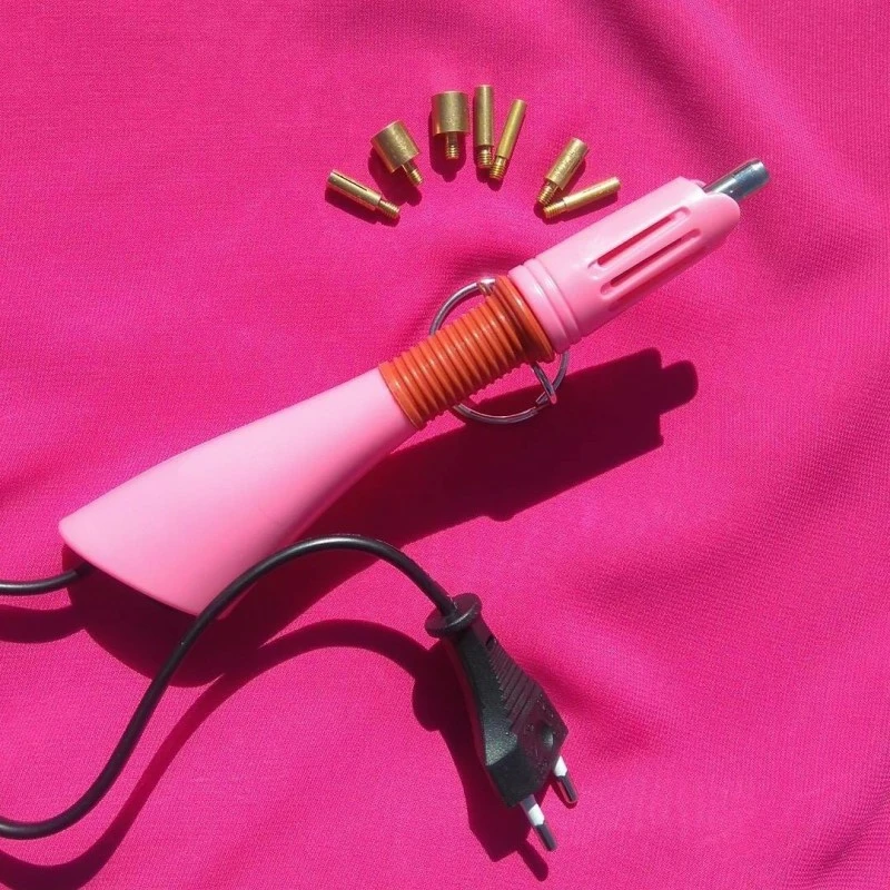 Outil chauffant permettant de fixer des strass » hotfix » afin de décorer des pièces de tissus ou d’armure.